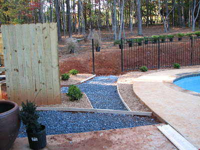 Of course there is still SOME manual labor to do, but it is MUCH easier when the heavy machinery does the hard part for you! :)I was going to finish that fence today, but turns out I'm short 3 swivel hangers, which I ordered today, but won't get until next week! Plus, it rained off and on today until now. That fence section though that I have in those tubes is not all that steady, so I need to shore it up by doing the retaining wall and filling it in with dirt, so figured I might as well tackle that while I wait on the fence parts. That opening you see is where the gate goes (obviously!). I'm going to put curved steps there that go from the pool deck down to the driveway so I can keep the pool deck clean! I have to pour some concrete though for the steps, so figured I'd tackle both chores at once, the steps and the retaining wall! We'll see how that works out!! :)